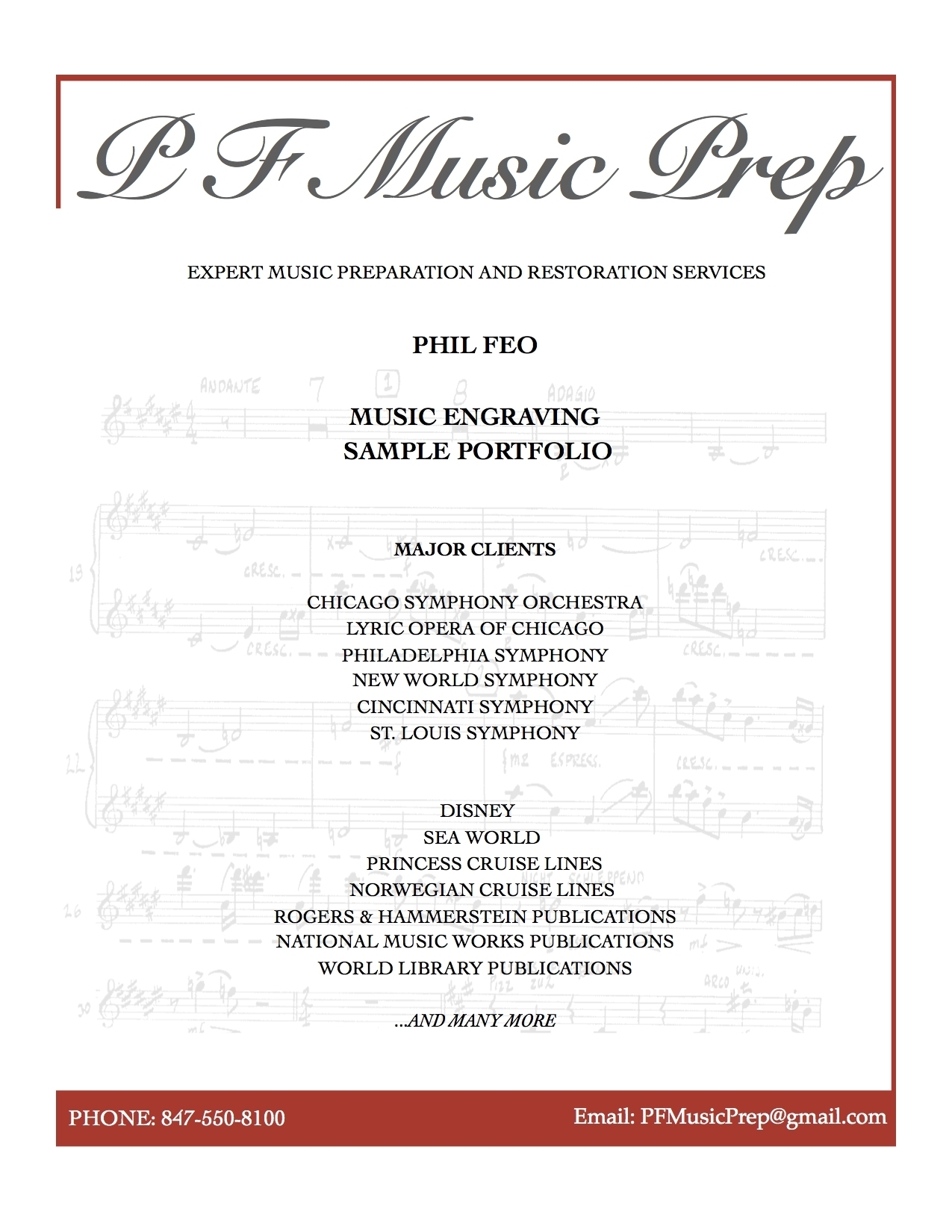 ABOUT PF MUSIC PREPARATION / Phil Feo - Ochestrator, Copyist & Librarian